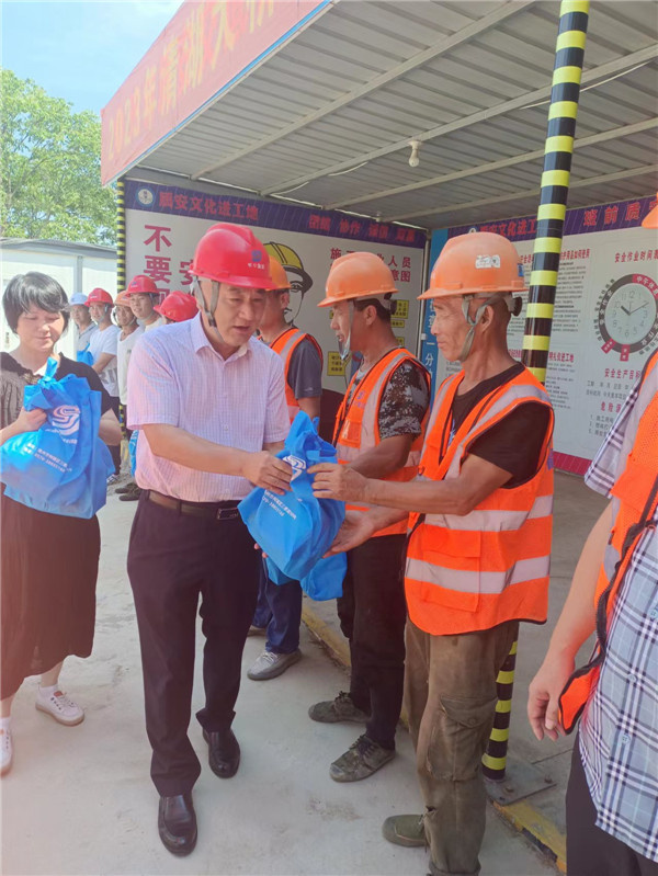7月1日起,集團董事長李元水、總經理肖華勇等領導帶領工會、安全部等有關部門負責人,分赴211省道江山市清湖大橋及接線工程項目部、六春湖上山應急救援道路工程項目部 、預制場等地,慰問奮戰(zhàn)在一線崗位的員工們和現場施工人員,為他們送去毛巾、沐浴露、肥皂、藿香正氣膠囊及飲料等防暑降溫“禮包”。