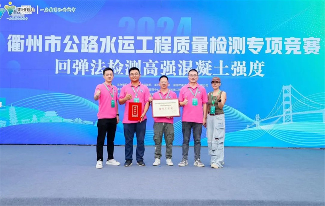 競賽設(shè)題用回彈法檢測高強混凝土強度,通過理論考試、視頻分析解題、現(xiàn)場實操及知識搶答四個環(huán)節(jié)展開激烈角逐,衢交檢測參賽隊由呂錦斌、周龍翔、何猛組成,憑借扎實的公路檢測專業(yè)知識、熟練的操作技能、良好的團隊協(xié)作能力,在25個參賽組隊伍中脫穎而出,榮獲團體三等獎。