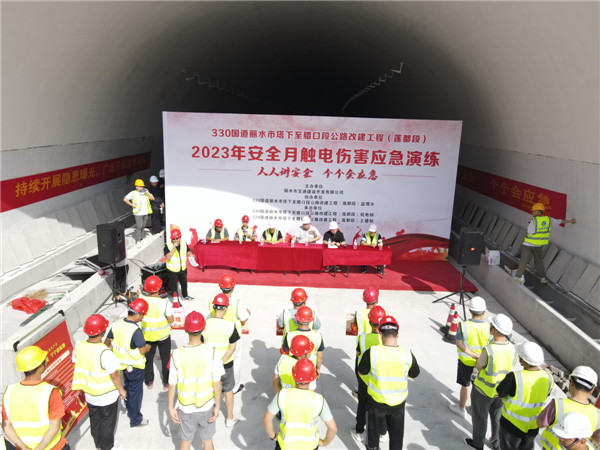 為認(rèn)真落實2023年全省交通運(yùn)輸系統(tǒng)“安全生產(chǎn)月”活動方案要求和衢交集團(tuán)關(guān)于“安全生產(chǎn)月”活動通知精神,6月25日下午,衢交集團(tuán)承建的330國道麗水塔下至臘口段改建工程(蓮都段)1標(biāo)項目部組織開展了觸電應(yīng)急救援演