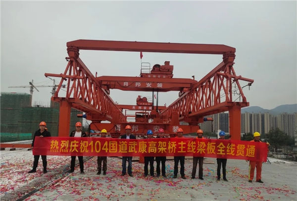 10月18日下午3點,衢交集團承建的104國道德清段改建工程高架段主橋最后一片梁板隨著架橋機的緩慢移動穩(wěn)穩(wěn)地落在指定位置,這標志著全長4.481km的高架橋主線梁板全線貫通!104國道德清段改建工程高架段路線全長5.05km