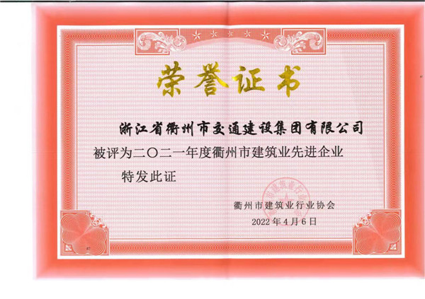 衢州市建筑業(yè)先進企業(yè)